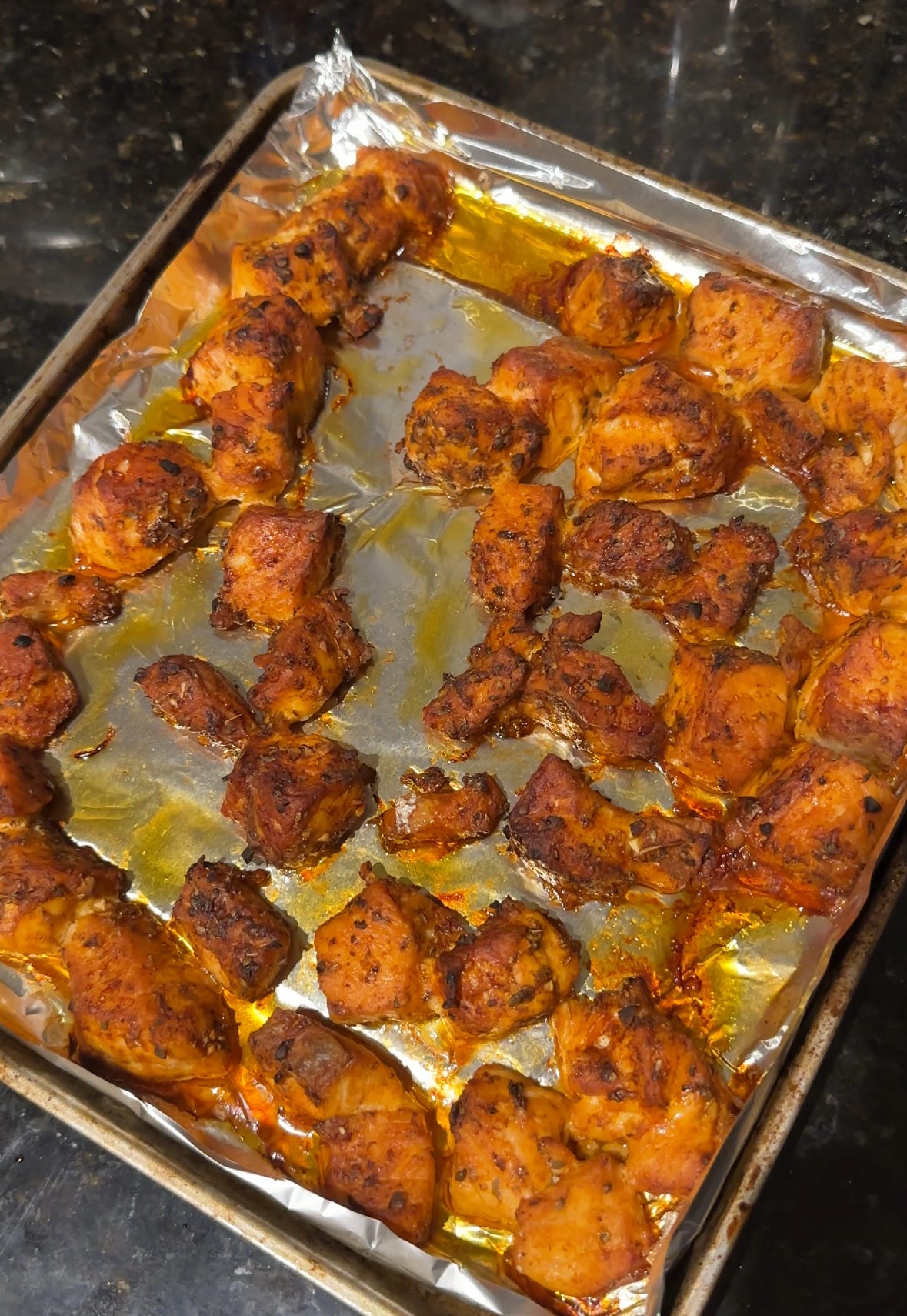 Remove the skin from your salmon and cut it into bite-size chunks